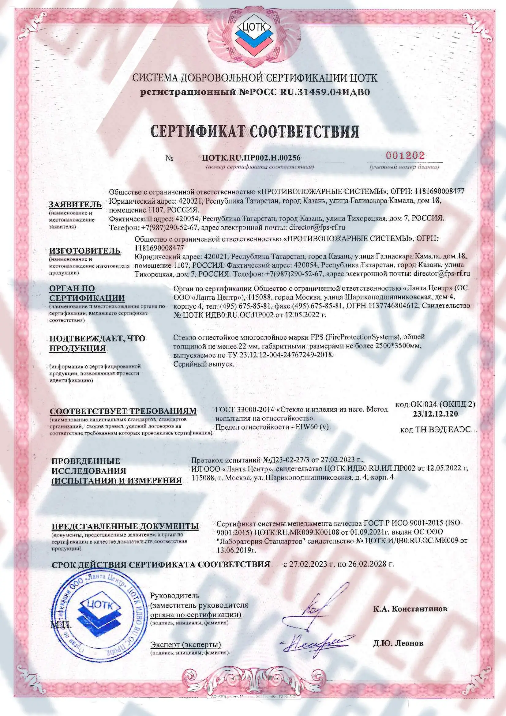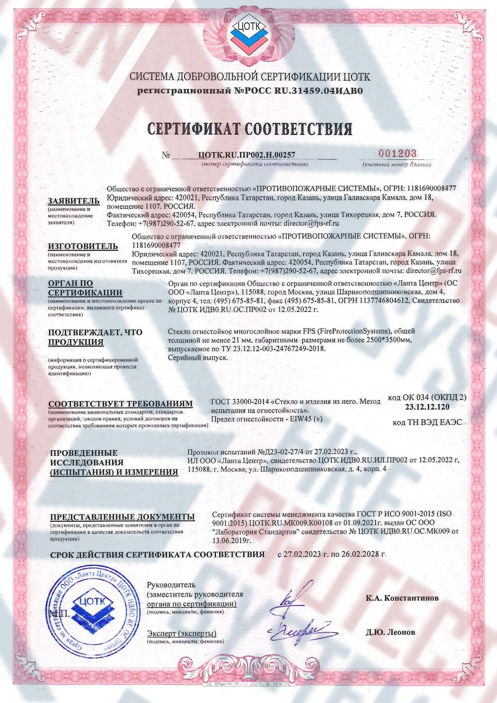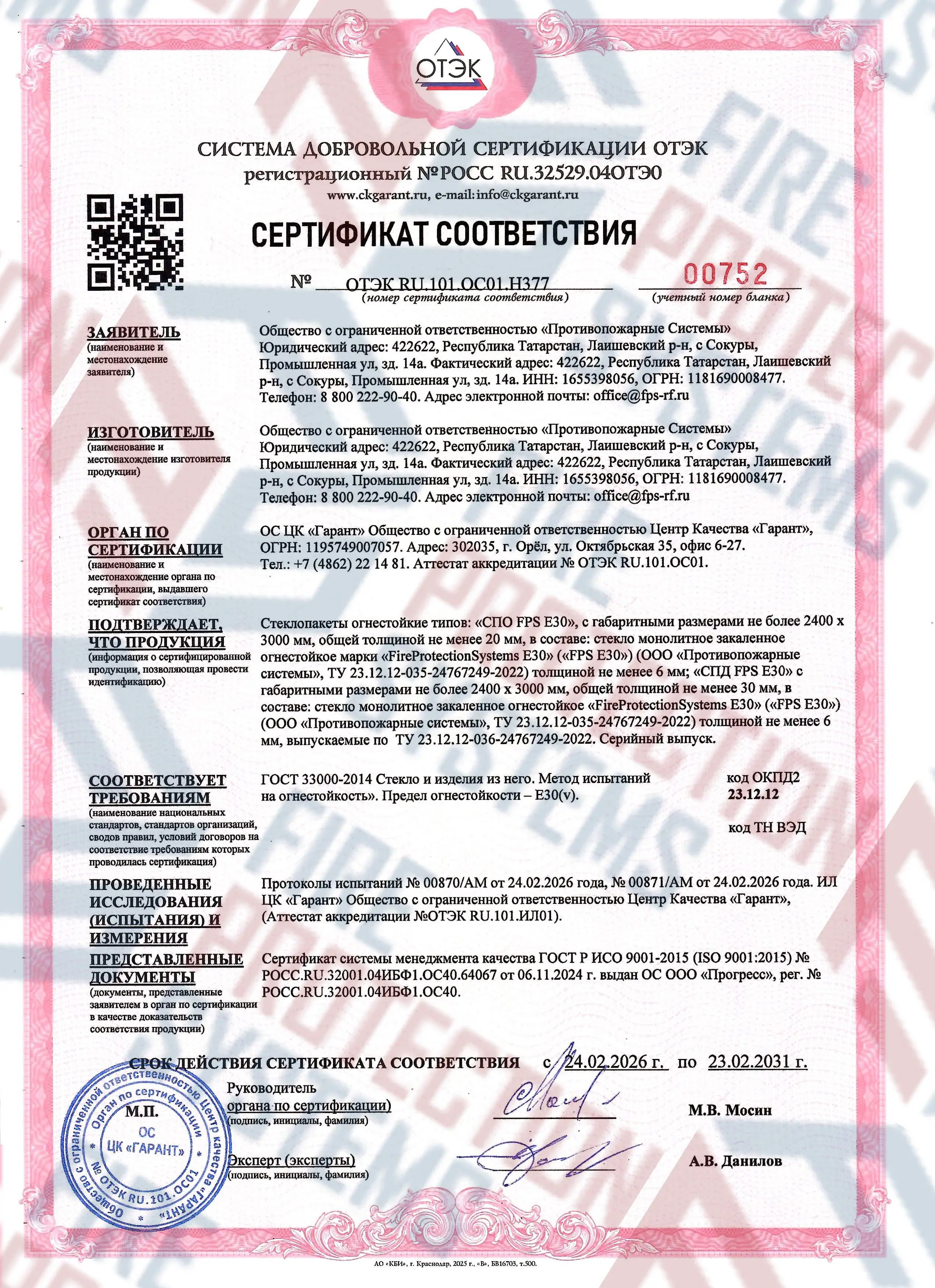 Соответствие нормам — сертифицировано согласно международным и российским стандартам пожарной безопасности.