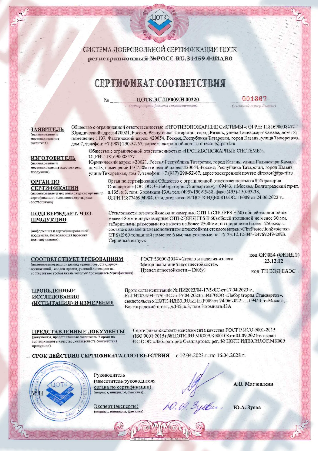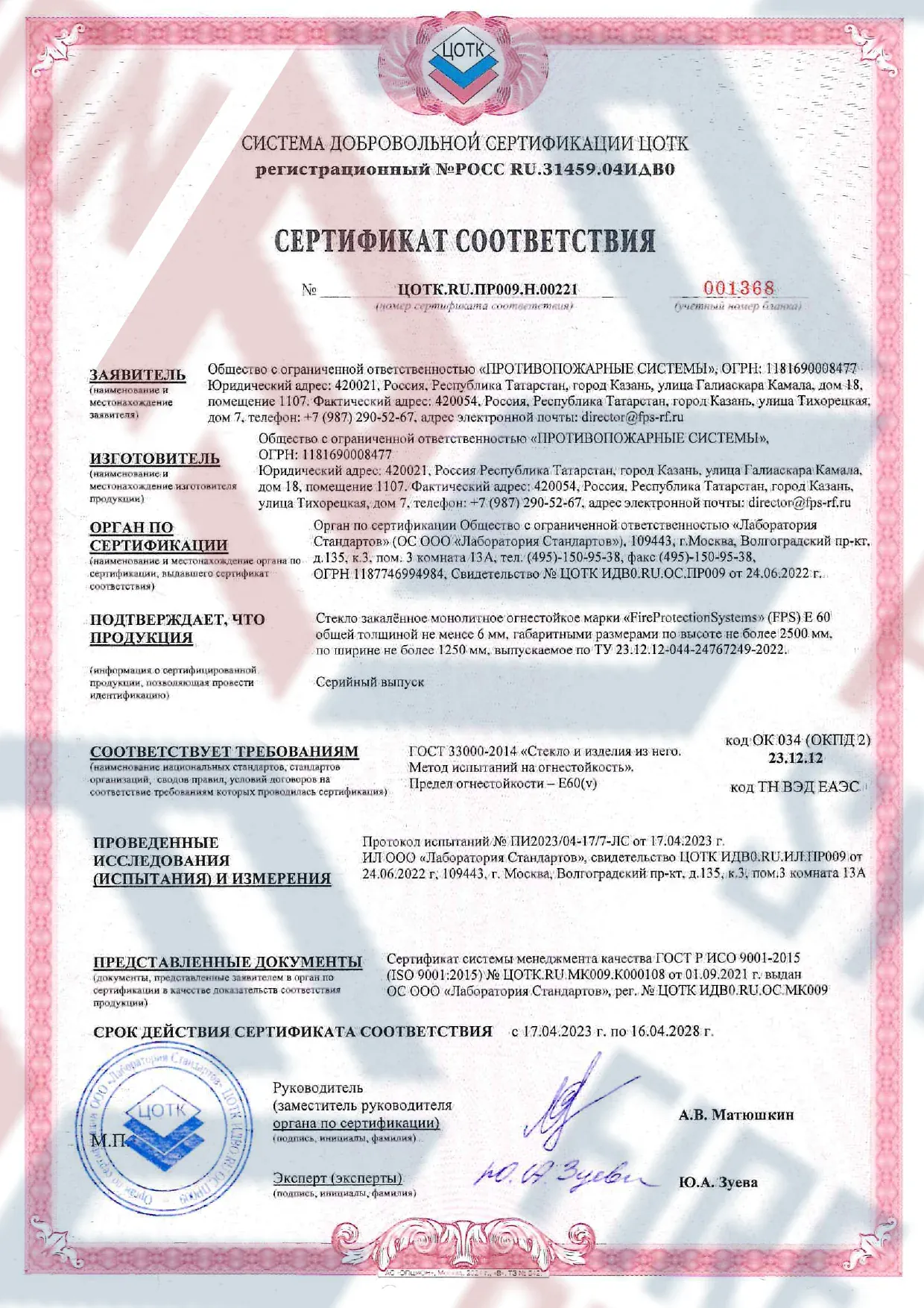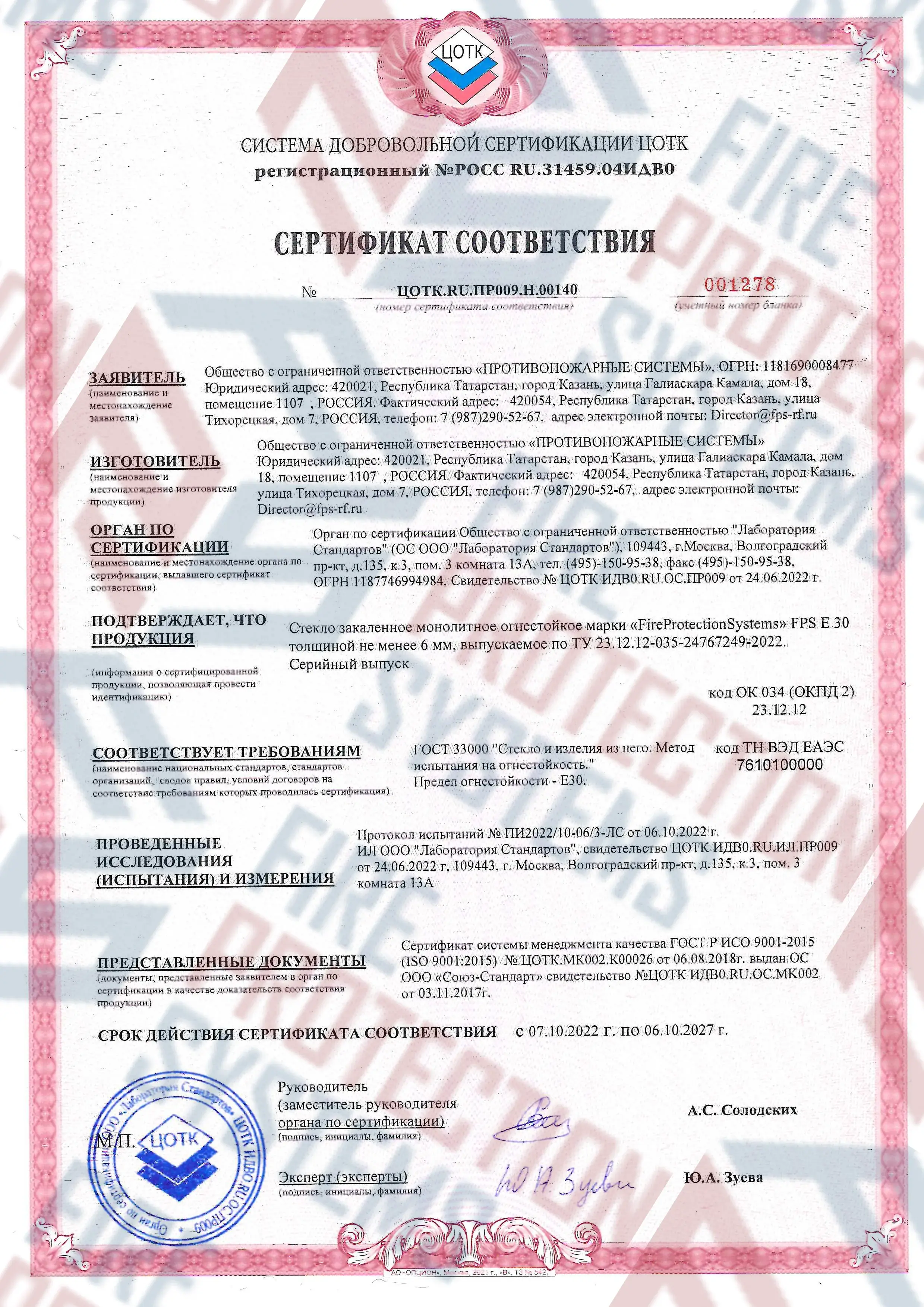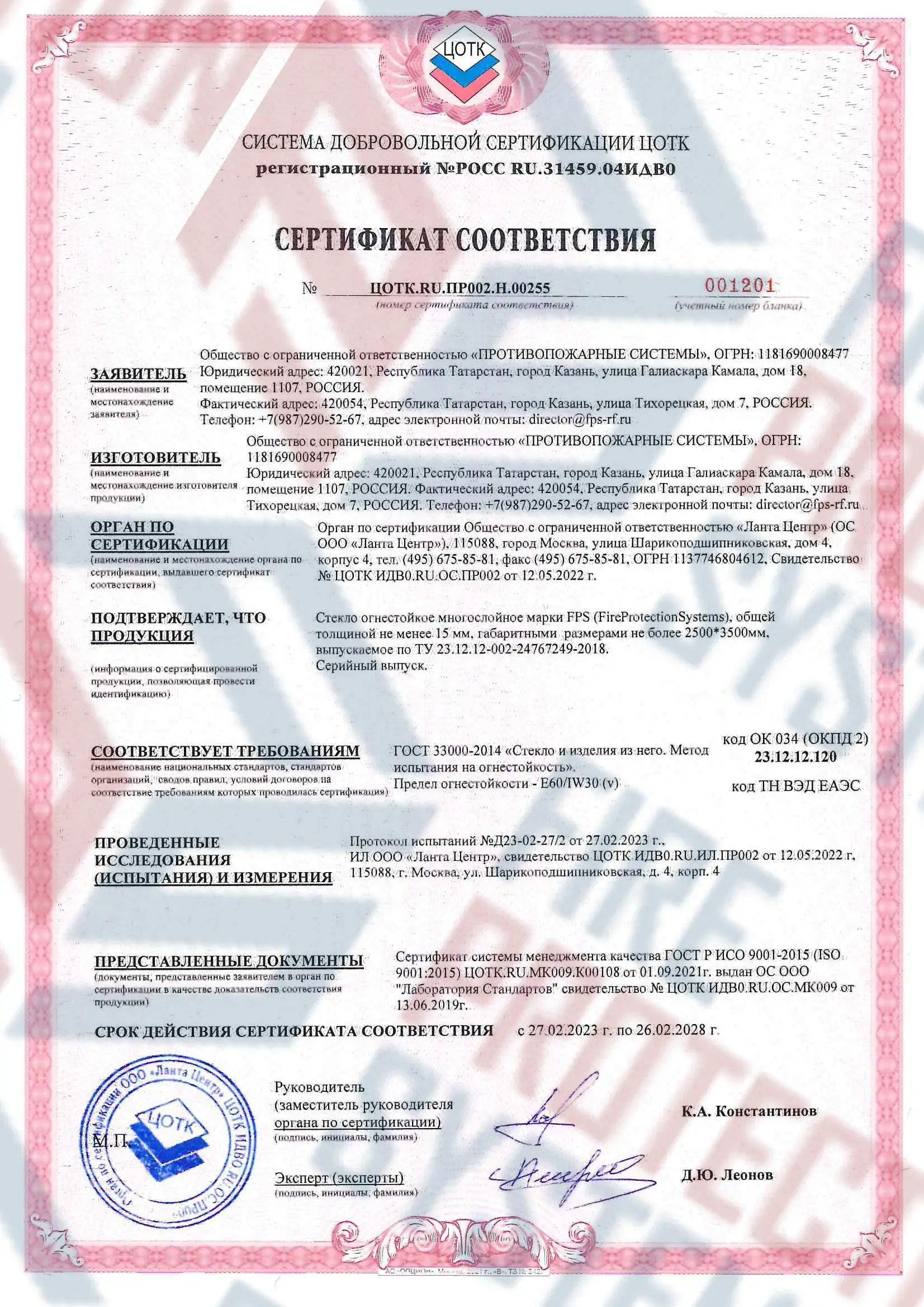 Соответствие нормам — сертифицировано согласно международным и российским стандартам пожарной безопасности.